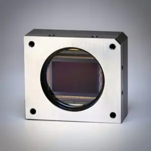 The NSV-571 camera integrates a Sony IMX571 sensor with a GMSL2 power-over-coax interface. The 28.3 mm 1.5:1 imager operates at 6.8 FPS in 16-bit mode. Region of interest modes support smaller captures at up to 100 FPS.