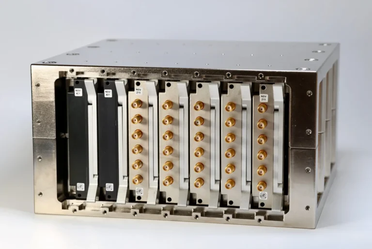The NSV-1312/1323/1325 are 3-, 5-, and 7-module SpaceVPX-2022-compatible chassis designed for space flight.  The chassis includes one or two VITA 62 compatible power module slots.  The backplane is equipped with redundant power planes, I2C IPMC buses, USB links, and PCIe Gen4 x4 links. GigE Ethernet and 4x RS485 UART payload connections are available on SOSA-compatible connectors on the back panel.